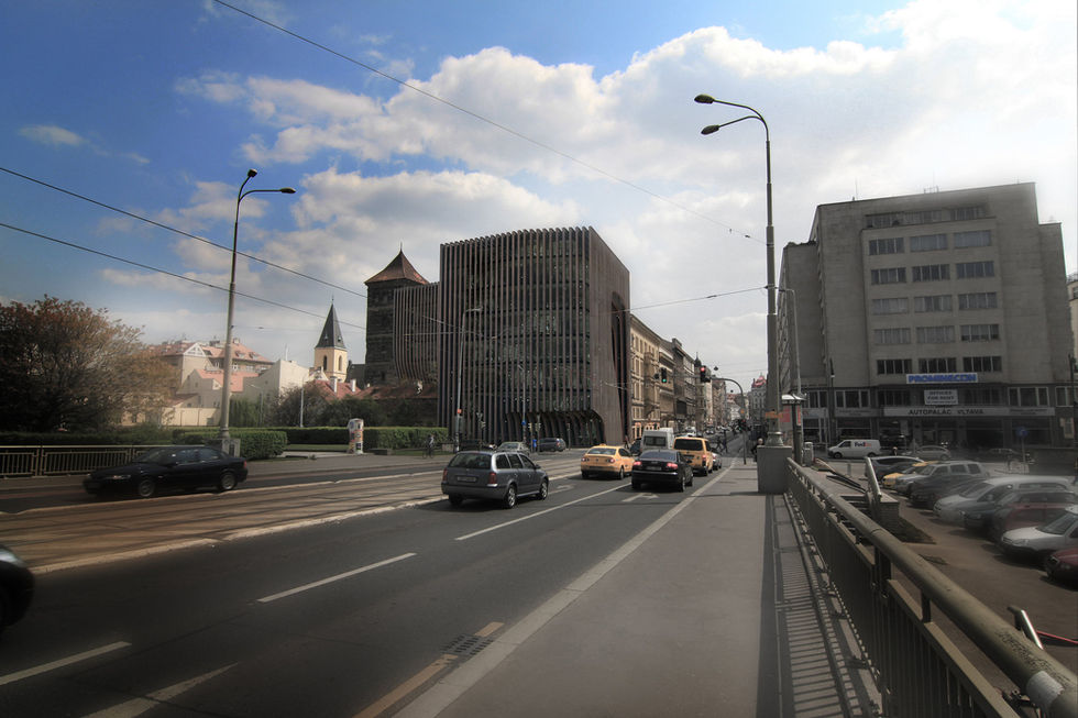 A dignified ending of Revoluční třída in Prague at the New Town side by the Vltava river is a long-lasting topic. Many projects were developed for this place in the past 70 years. We won a competition for invited architects organised by the owner of the current building on the corner of Revoluční/Lannova. The project, later named Novomlýnská brána (Novomlýnská Gate), passed through rather a heated public discussion then. However, the new majority owner eventually decided to follow a different direction with a different team. Since then we have no choice but to keep our fingers crossed for Prague.